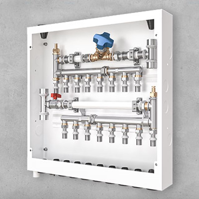 LK Fordelerskap Kombi er en løsning hvor du kombinerer varmt tappevann og varmt vann. Ved hjelp av kombiskapet minimerer du antall skap